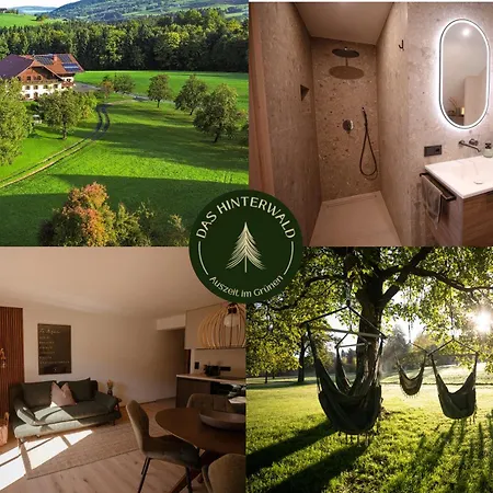 A Das Hinterwald - Auszeit Im Gruenen apartman felszerelt konyhasarokkal ellátott, melyben saját ételek elkészítéséhez szükséges eszközök állnak rendelkezésre. Az apartmanban továbbá van egy terasz, kilátással a hegyre.